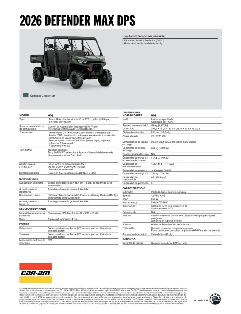 CAN-AM DEFENDER HD9 MAX DPS 2026 cantidad